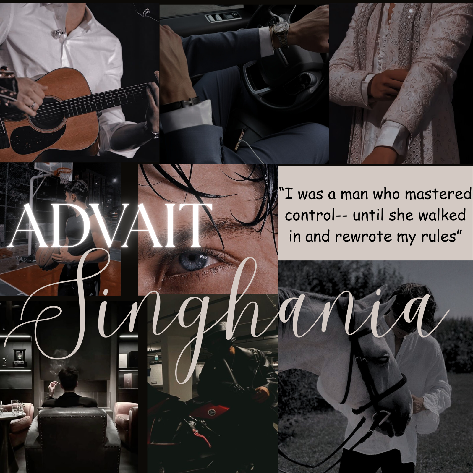 Advait Singhania (30), the formidable CEO of Singhania Groups and Co., is a devil in disguise, dressed as a gentleman. With a flawless face, a Greek-god physique, and piercing ocean-blue eyes that both attract and intimidate, he exudes an aura of power. Standing at 6'2", his towering presence, coupled with his grumpy demeanor, makes him a man of few wordsβbut when he speaks, the world listens.