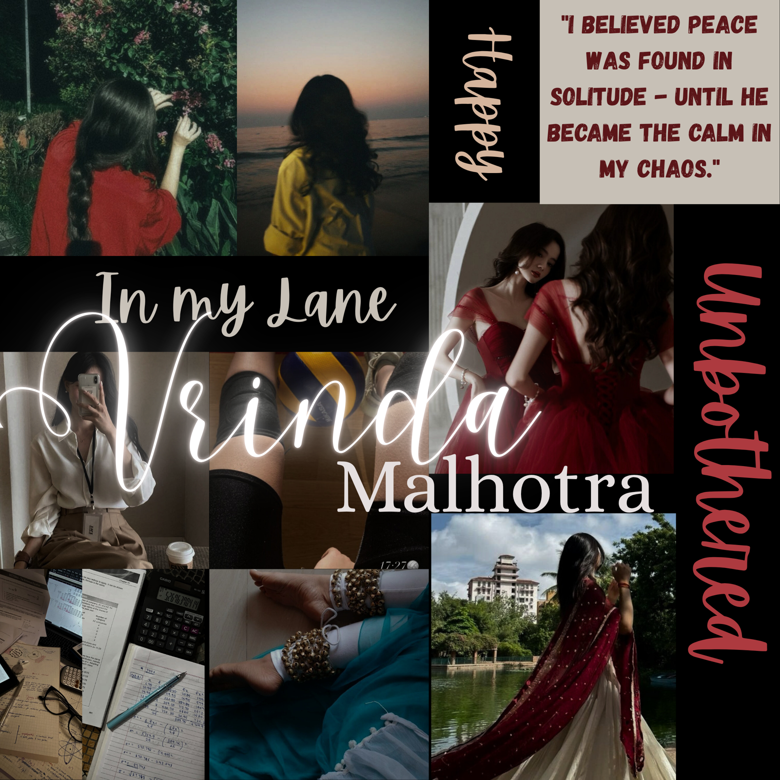 Vrinda Malhotra, a 21-year-old , hails from a middle-class background and carries an aura of quiet resilience. Standing at 5'6", she possesses a beauty that is both understated and captivating. Her long, wavy hair is often tied back, her dark brown eyes framed by glasses, making them appear even larger and more expressive when revealed. With a pointed nose, an oval-shaped face, and signature bunny teeth, she carries an innocent charm that belies the strength within her.